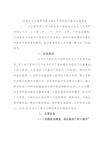 时代党的组织路线,着力提高组织工作质量,制定如下实施意见。一、总体要求以习近平新时代中国特色社会主义思想为指导,深入学习贯彻习近平总书记关于党的建设和组织工作重要指示批示要求,全面落实《中国共产党组织工作条例》、新时代党的组织路线,以坚持和加强党的全面领导为根本目的、