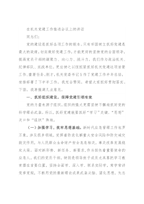 ,更应持之以恒抓紧抓好机关党建这项首要工作、重要任务。刚才,机关党委书记X作了党建工作半年总结,安排部署了下半年工作,我完全赞同,希望大家抓好贯彻落实。下面,我再强调几点意见。一、抓好组织建设,保障党建引领有效党的力量来源于组织,组织的强大更需坚持不懈地抓好党的科学理论武装