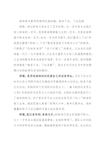 高职青年教师师德师风演讲稿:桃李不言,下自成蹊转眼,我们的党已经走过了百年征程,这一百年是矢志践行初心使命的一百年,是筚路蓝缕奠基立业的一百年,亦是创造辉煌开辟未来的一百年。在这一百年的历程中,我们教育人不忘“传道授业解惑”的初心,不负“教育是国家万年根本大计”的使命,不断践行