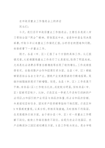 在市政府重点工作推进会上的讲话同志们:今天,我们召开市政府重点工作推进会,主要任务是深入学习贯彻全国“两会”精神,贯彻落实中央、省委和市委各项决策部署,听取今年以来重点工作情况汇报,分析存在的困难和问题,安排部署下一步重点工作。刚才,各县(市、区)汇报了6个方面的具体工作。