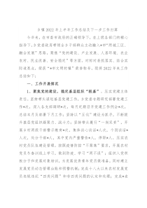 际造亮点,荣获“*市文明村镇”荣誉称号,现将2022年来工作总结如下:一、工作开展情况1、聚焦党的建设,稳定基层组织“根基”。压实党建主体责任。坚持带头谋划基层党建工作,乡党委专题研究部署党建工作*次,深入各支部调研