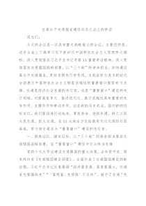 的理念、制度和建设成效,全过程保障和促进高水平交通强省建设。同志们,高水平交通强省建设战鼓已经擂响,新的征程已经开启。让我们紧密团结在以习近平同志为核心的党中央周围,干在实处、走在前列、勇立潮头,努力谱写XX交通现代化