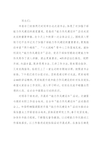 同志们:市委专门安排两天时间举办这次读书会,体现了对加强干部能力作风建设的高度重视,是推进“能力作风建设年”活动走深走实的重要举措。在今天上午的第一次全体会议上,围绕深入贯彻习近平总书记关于加强干部能力作风建