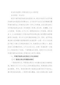 在全区决战第二季度攻坚大会上的讲话各位领导、同志们:我区开展环境污染防治攻坚战以来,通过年初召开全区环境污染防治攻坚战动员部署会议、X月份召开全区生态环境建设暨环境污染防治工作推进会议等一系列工作举措,全区各级各部门对环