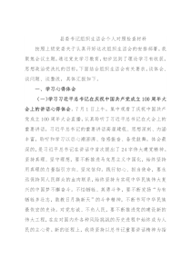 苦境遇下毫不畏惧,才能用热血写忠诚,永葆政治本色,践行铮铮誓言。二、存在的问题和不足一是对照党的创新理论方面。理论学习不够深入,对“四史”思考性学习、研究性学习不到位,在系统把握、学深悟透方面还有待加强。党史学习按部就班、依规推进,认为“学过”即是“学好”、“作笔记”即是