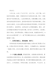 同志们:今年以来,全市上下立足于早、立足于实、立足于做,全力抓好项目建设,确保一季度经济运行呈现良好态势。预计一季度固定资产投资增长*%,工业投资增长*%。但要清醒认识到,区域竞争说到底是项目竞争,虽然我市固定资产投资较快增长,但在全省位次靠后,这充分说明各