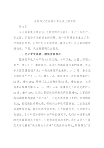 县委书记在县委工作会议上的讲话同志们:今天召县委工作会议,主要目的对全县1--11月工作进行一个总结,认真分析当前存在的问题,进一步明确全年重点工作,冲刺第四季度,全力打好今年收官战,确保全市社会大局持续和谐稳定。下面,我主要强调几点意见。一、充分肯定成绩,