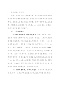 性广告。三、下一步工作计划(一)持续强化创城宣传。群众是创城主体,也是最大受益者,综合运用上门宣传、印发传单、新媒体等各种有效方式,继续开展全方位、广覆盖的宣传活动,进一步提高市民对创建工作的知晓率、支持度和参与率,最大限