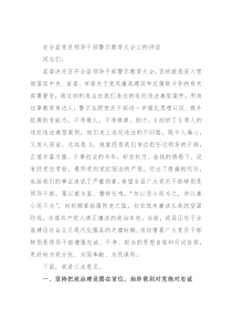 在全县党员领导干部警示教育大会上的讲话同志们:县委决定召开全县领导干部警示教育大会,目的就是深入贯彻落实中央、省委、市委关于党风廉政建设和反腐败斗争的有关部署要求,通过剖析发生在我们身边的违纪违法典型案件,用身边事教育身边人,警示各级党员干部进一步强化思想认识、提升拒腐防变能
