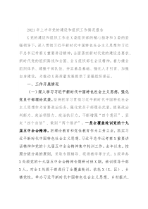 2021年上半年党的建设和组织工作情况报告X党的建设和组织工作在X委组织部的精心指导和X委的坚强领导下,深入贯彻习近平新时代中国特色社会主义思想和习近平总书记考察X重要讲话精神,全面落实新时代党的建设总要求、新时代党的