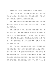尊敬的*书记、*校长,敬爱的老师们,亲爱的同学们:大家好,我是94投资1班学生*,很荣幸代表校友在今天的毕业典礼上发言。因时间安排冲突,我无法亲临现场,只能在千里之外的鹏城,向老师们、同学们问候致意。我的思绪宛若回到28年前带着憧憬和美好初