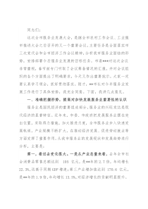 现全市服务业的大发展。二、明确任务目标,打造全国重要的区域性商贸物流中心市三次党代会和全市经济工作会明确提出要做大第三产业,建设全国重要的区域性商贸物流中心。按照这个目标,当前和今后一个时期,全市服务业发展的总体要求是:认真贯彻落实市三次党代会和全市经济工作会议精神,以开展