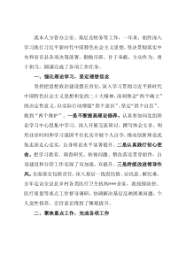 我本人分管办公室、基层及财务等工作,一年来,始终深入学习践行习近平新时代中国特色社会主义思想,坚决贯彻落实中央和省市县各项决策部署,勤勉尽职、甘于奉献,主动作为、勇于担当,圆满完成了各项工作任务。一、强化理论学习,坚定理想信念坚持把思想政治建设摆在首位,深入学习贯彻习近平新时代中国特色