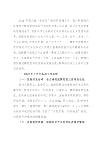、市、县配套规定,持之以恒正风肃纪。加强纪检监察监督,突出重点领域和资源配置、工程项目实施、资金分配等关键环节,严肃查处违纪违法行为,强力推进法治政府、廉洁政府建设。二、2022年下半年工作计划2022年是开启全面建设社会主义现代化新征程的重要一年,更是乘势而上高质量建设幸福*的关键之