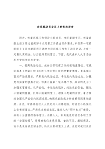 在巡察动员会议上的表态发言刚才,市委巡察工作领导小组成员、市纪委副书记、市监委副主任X同志就做好本次巡察工作提出具体要求,市委第一巡察组组长X同志就即将开展的专项巡察工作作了动员讲话,大家一定要认真领会,切实抓好贯彻落实。下面,我代表市人大常委会机关党组作表态发言:一、提高政治站位