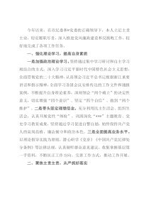 、贪污侵占及暗箱操作、索贿受贿等“雁过拨毛”式的“微腐败”和不正之风,形成了风清气正的良好发展环境。三、坚持严以律己,永葆清廉本色始终坚持“正人先正己”,以身作则,率先垂范。一是严格遵守党的纪律,自觉维护党委领导班子的团结,重大事项均主动向党委主要领导请示汇报,时
