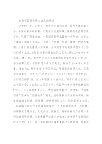 在全市招商引资大会上的讲话过去的一年,全市上下抢抓产业转移机遇,着力夯实承接平台,全面创新体制机制,不断优化发展环境,强势推进招商引资工作,取得了明显成效。一是招商引资氛围进一步形成。全市上下增强了招商引资意识,形成了“亲
