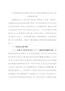 X区委组织部长在部机关党史学习教育专题组织生活会上的对照检查材料按照区委关于认真开好“学党史、悟思想、办实事、开新局”专题组织生活会的安排部署,我深入学习宣传贯彻习近平总书记在庆祝中国共产党成立100周年大会上的重要讲话,重点学习党中央指定的习近平《论中国共产党历史》、《习近平新时代中国特色社