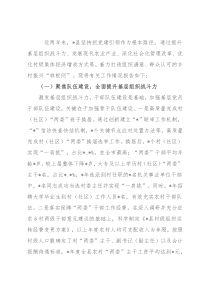 村(社区)疫情防控网格体系,打通疫情防控“最后一百米”。(三)聚焦乡村振兴,全面提升基层硬软实力水平实现新时代乡村振兴,要推动农业全面升级、农村全面进步、农民全面发展,全面提升基层硬软实力是保障。一是打造*农业“特”