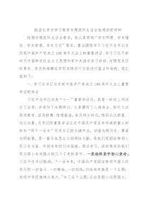 副县长党史学习教育专题组织生活会检视剖析材料按照专题组织生活会要求,我认真贯彻“学史明理、学史增信、学史崇德、学史力行”要求,重点围绕学习习近平总书记在庆祝中国共产党成立100周年大会上的重要讲话、学习习近平新时代中国特色社会主义思想和党中央指定学习材料、对照党史目标要求、党员先锋模范作用发挥