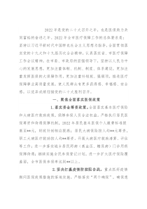 2022年是党的二十大召开之年,也是医保助力共同富裕的奋进之年。2022年全市医疗保障工作的总体要求是:坚持以习近平新时代中国特色社会主义思想为指导,全面贯彻落实党的十九大和十九届历次全会精神,认真落实省、市医疗保障工作会议精神,在市委、