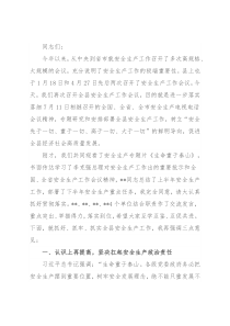 分暴露了安全生产主体责任未落实,安全隐患排查不到位等问题,引起了社会广泛关注,这也给我们敲响了警钟。从刚才文合同志的通报情况看,年初以来,我县严格落实安全生产责任制,扎实开展安全生产大检查,做了大量扎实有效的工作,全县安全生产形势继续保持平稳、向好态势。同时,也要清醒的看到,排查出的**项安全风