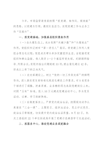 程;党组成员带头参加双重组织生活,自觉接受党组织和群众监督,每人联系1—2个基层所党支部,定期调研指导、列席会议,发现并指出问题短板33项,提出意见建议42条,形成以上率下的正向风气。(二)在支部建设上,树立“党的一切工作到支部”的鲜明导向,深入落实党支部标准化规范化建设工作要