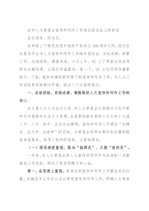 念,力争在宣传和写作工作上取得新的突破。二、提高认识,认清形势,增强做好人大宣传和写作工作的责任感和使命感人大宣传和写作工作是人大工作的重要组成部分,也是党的宣传工作的重要组成部分。作为人大工作者,要充分认识到宣传工作对于推进民主政治建设,提高广大干部群众的民主法制观