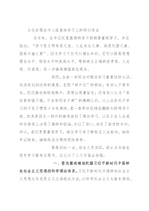 主任在理论中心组集体学习上的研讨发言近年来,总书记反复强调领导干部都要重视学习,并且指出:“学习是文明传承之途、人生成长之梯、政党巩固之基、国家兴盛之要”。因为学习不仅可以增长知识,还可以提高思想理论水平、领导水平和执政水平,帮助树立正确的世界观、