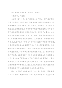 在X市教育工会系统工作会议上的讲话各位领导、同志们:大家下午好。今天,我们以视频会议的形式,召开教育系统工会工作会议,主要任务是:紧紧围绕党对群团工作的要求,部署推进教育工会全年重点工作。本周一,全市高三、初三两个年级学生已经顺利返校,各高校和中等职业学校也陆续公布毕业年级和其他年级学