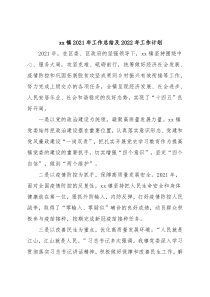 xx镇2021年工作总结及2022年工作计划2021年,在区委、区政府的坚强领导下,xx镇坚持围绕中心、服务大局,攻坚克难、砥砺前行,统筹做好经济社会发展、疫情防控和巩固拓展脱贫攻坚成果同乡村振兴有效衔接等工作,努力完成上级交办的各项任务,全镇呈现经济发展、社会进步