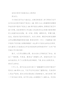 各位嘉宾以及奋战在全市各条战线的各级党组织和广大共产党员致以节日的问候!刚才,X位同志围绕主题,结合自身工作情况谈了体会,表达了“感党恩、听党话、跟党走”的强烈心声,其他同志作了自由交流发言,听了以后很受启发和教育。下面,结合大家的发言,我谈几点体会。7月