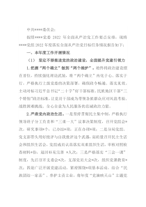 中共****委员会:按照****党委2022年全面从严治党工作要点安排,现将****党组2022年度落实全面从严治党目标任务情况报告如下:一、本年度工作开展情况(1)坚定不移推进党的政治建设,全面提升党建引领力1.把握“两个确立”做到“两个维护”。始终将政治建设摆在首位,持续强化理论武装,将“两