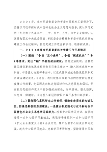 效。一、2021年度市纪委监委机关党建工作开展情况(一)围绕“争当‘三个表率’、争创‘模范机关’”和X等要求,突出“融”字狠抓政治建设。坚持政治统领,注重把政治建设要求体现在机关党员日常工作之中,融入到完成党中央和省、市委重大决策部署当中,以完成任务成