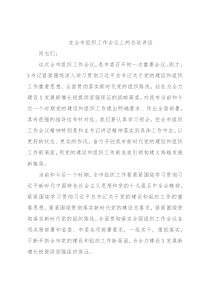 在全市组织工作会议上的总结讲话同志们:这次全市组织工作会议,是市委召开的一次重要会议。刚才,X书记紧紧围绕深入学习贯彻习近平总书记关于党的建设和组织工作重要思想、全面贯彻落实新时代党的组织路线,站在为全
