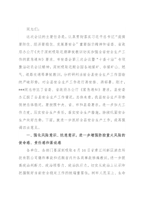 ,要认真总结好的做法,健全长效机制,推动我县安全发展水平整体提升。四、进一步压实安全生产责任,确保全县安全形势持续稳定防控重大安全风险、创造和谐稳定环境,是必须扛起的重大政治责任,是对各级领导干部的政治考验。坚持“万无一失、一失无万”标准和“细致、精致、极致”作风,把安全生产