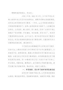 尊敬的指导组组长、同志们:大家上午好。2021年3月,以习近平同志为核心的党中央立足百年党史新起点、着眼开创事业发展新局面,决定在全党开展党史学习教育。一年来,xx公司党委在集团公司党组的坚强领导下,在第x指导组的有力指导下,认