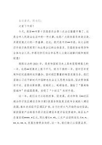 各位委员,同志们:大家下午好!今天,政协**市第十四届委员会第二次会议隆重开幕了。这是全市人民政治生活中的一件大事,也是广大政协委员参政议政、共商发展大计的一件盛事。在此,我代表中共**市委,向大会的召开表示热烈祝贺!向出席会议的全体委员、历届政协老领导和全体与会人员,并通过你们向全市各