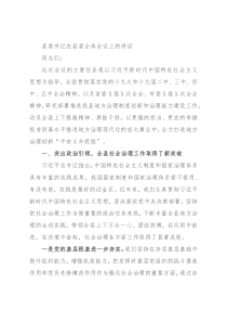 县委书记在县委全体会议上的讲话同志们:这次会议的主要任务是以习近平新时代中国特色社会主义思想为指导,全面贯彻落实党的十九大和十九届二中、三中、四中、五中全会精神,以及省委X届X次全会、市委X届X次全会精