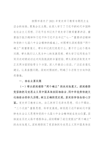 按照市委关于2021年党史学习教育专题民主生活会的安排,聚焦会议主题,在深入学习了习近平新时代中国特色社会主义思想、习近平总书记关于党史学习教育重要讲话、重要指示批示精神和习近平和习近平总书记“七一”重要讲话精神和党的十九届六中全会