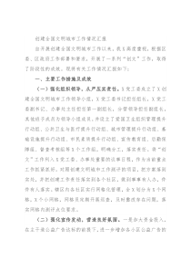 创建全国文明城市工作情况汇报自开展创建全国文明城市工作以来,我X高度重视,根据区委、区政府工作部署和要求,开展了一系列“创文”工作,取得了阶段性的成效。现将有关工作情况汇报如下:一、主要工作措施及成效(一)强