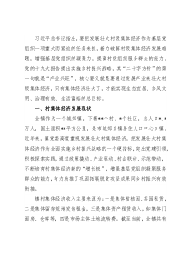 集体经济,只有集体经济壮大了,才能实现生态宜居、乡风文明、治理有效、生活富裕的总目标。一、村集体经济发展现状全镇作为一个城郊镇,下辖**个村、*个社区,总人口*.*万人,国土面积**平方公里,是市城郊乡镇居住人口中心乡镇。近年来,镇党委高度重视发展壮大村集体经济,把发展壮大村集体经济作为