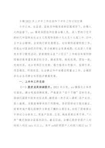 乡镇2021年上半年工作总结和下半年工作计划打算今年以来,在县委、县政府和镇党委的坚强领导下,在镇人大的监督下,xx镇政府团结和依靠全镇人民,深入贯彻习近平新时代中国特色社会主义思想和党的十九大及十九届三中、四中、五中全会精神,自觉践行新发展理念,切实做好疫情防控工作,积