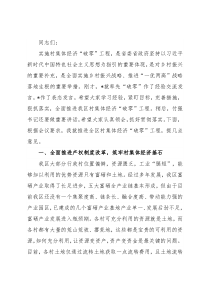 村开展农村集体产权制度改革试点工作,今年我区被列为全国农村集体产权制度改革整县推进试点区,我们要紧紧抓住这次全国试点的机遇,再次明确“时间表”和“路线图”,勇于创新,大胆探索有效路径,盘活农村所有资源性、资产性、资