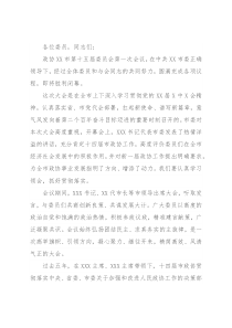 作提出明确要求,为全市政协事业发展指明了方向、增添了动力。我们要认真学习领会,抓好贯彻落实。会议期间,XXX书记、XX代市长等市领导出席大会,听取发言,与委员们共商创新良策、共谋发展大计。广大委员以高度的政治
