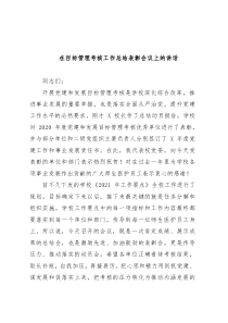 在目标管理考核工作总结表彰会议上的讲话同志们:开展党建和发展目标管理考核是学校深化综合改革,推进事业发展的重要举措,也是落实全面从严治党,提升党建工作水平的必然要求。刚才X校长作了总结动员报告,学校对2020年度党建和发展目标管理