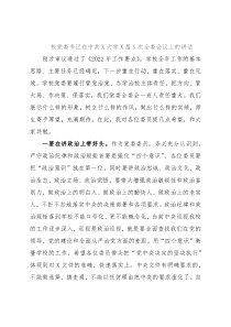 校党委书记在中共X大学X届X次全委会议上的讲话刚才审议通过了《2022年工作要点》,学校全年工作的基本思路、主要任务已经确定,下一步重在行动、重在落实、重在见效。学校党委要履行管党治党、办学治校主体责任,把方向、管大局、作决策、保落实,我们党委全委会一班人