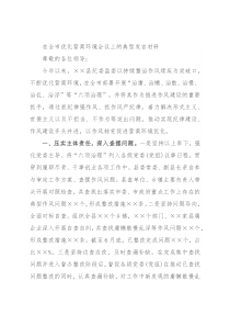 在全市优化营商环境会议上的典型发言材料尊敬的各位领导:今年以来,××县纪委监委以持续整治作风顽疾为突破口,不断优化营商环境,在全市部署开展“治庸、治懒、治散、治慢、治乱、治浮”等“六项治理”,并将其作为推进作风建设