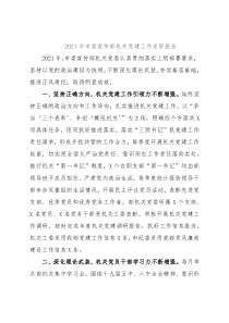 2021年市委宣传部机关党建工作述职报告2021年,市委宣传部机关党委认真贯彻落实上级部署要求,坚持以党的政治建设为统领,不断深化理论武装,夯实基层基础,推进正风肃纪,取得明显成效。一、坚持正确方向,机关