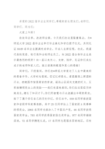 亲爱的2022届毕业生同学们,尊敬的家长朋友们,老师们、同学们、同志们:大家上午好!依依毕业季,浓浓师生情。今天我们在这里隆重集会,为*师范大学2022届毕业生举行毕业典礼和学位授予仪式,共同见证8449名毕业生圆满完成学业,